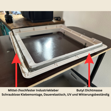 Als KFZ Meister und Sachverständiger weiß ich genau, worauf es ankommt. Ich verzichte auf die üblichen 12 Schrauben im Dach und setze stattdessen auf eine dauerelastische, UV und witterungsbeständige Klebe Dichtnaht. Zusätzlich wird eine innere Dichtnaht gesetzt, um maximale Sicherheit gegen Undichtigkeiten zu gewährleisten.